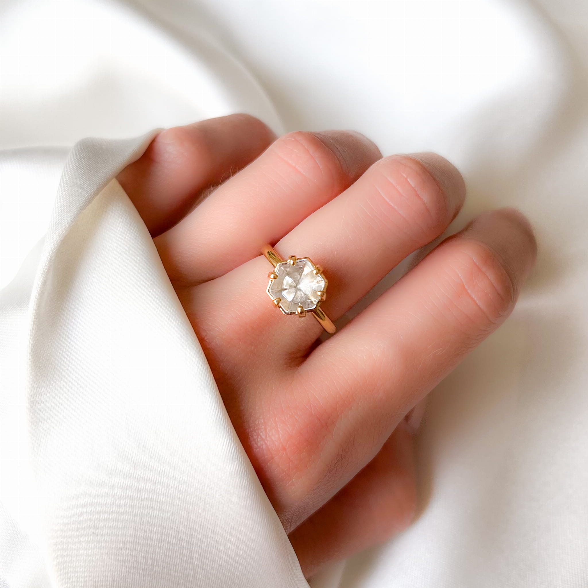 Pierścionek Heksagon z Kryształem Górskim Gold