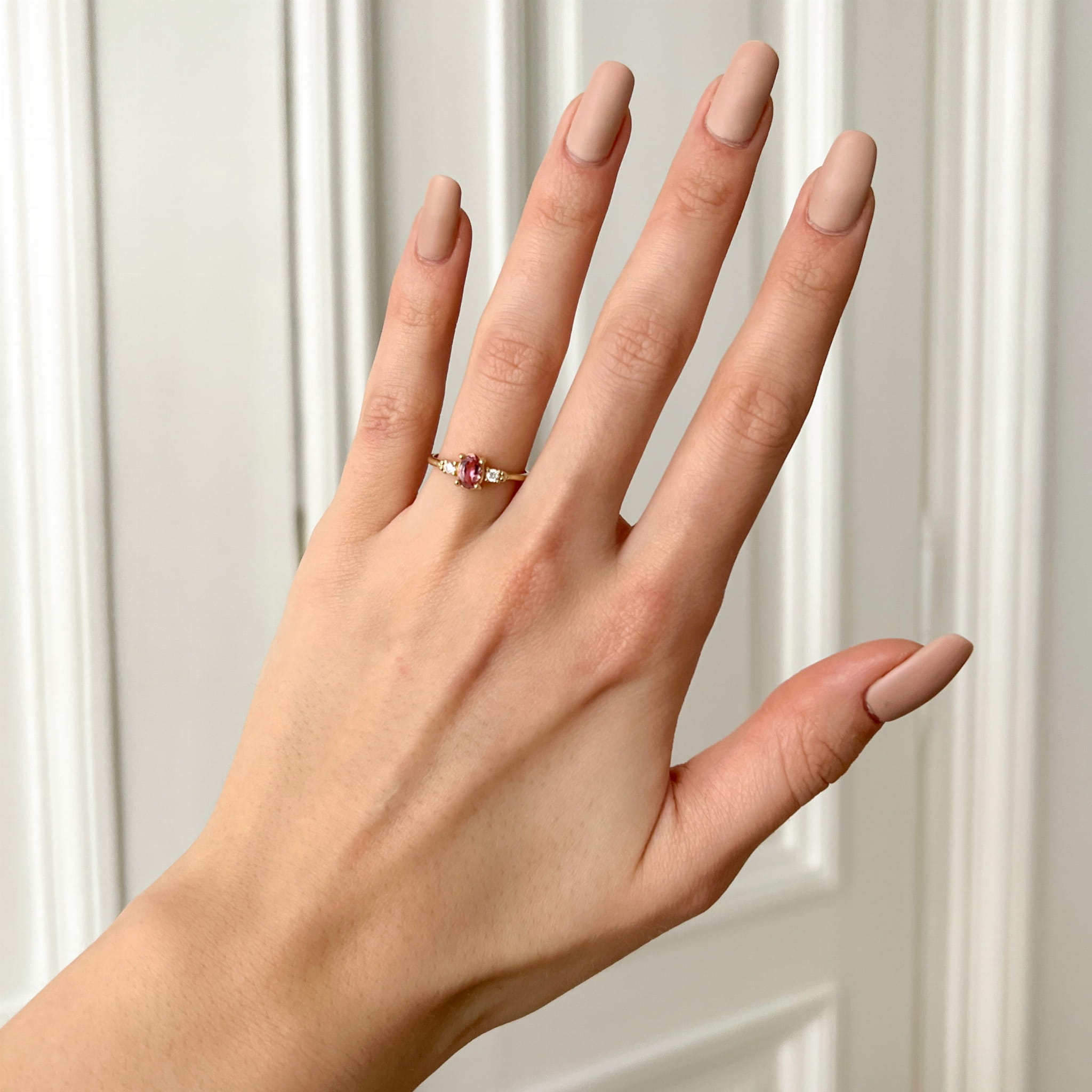 Pierścionek z Różowym Turmalinem i Brylantami