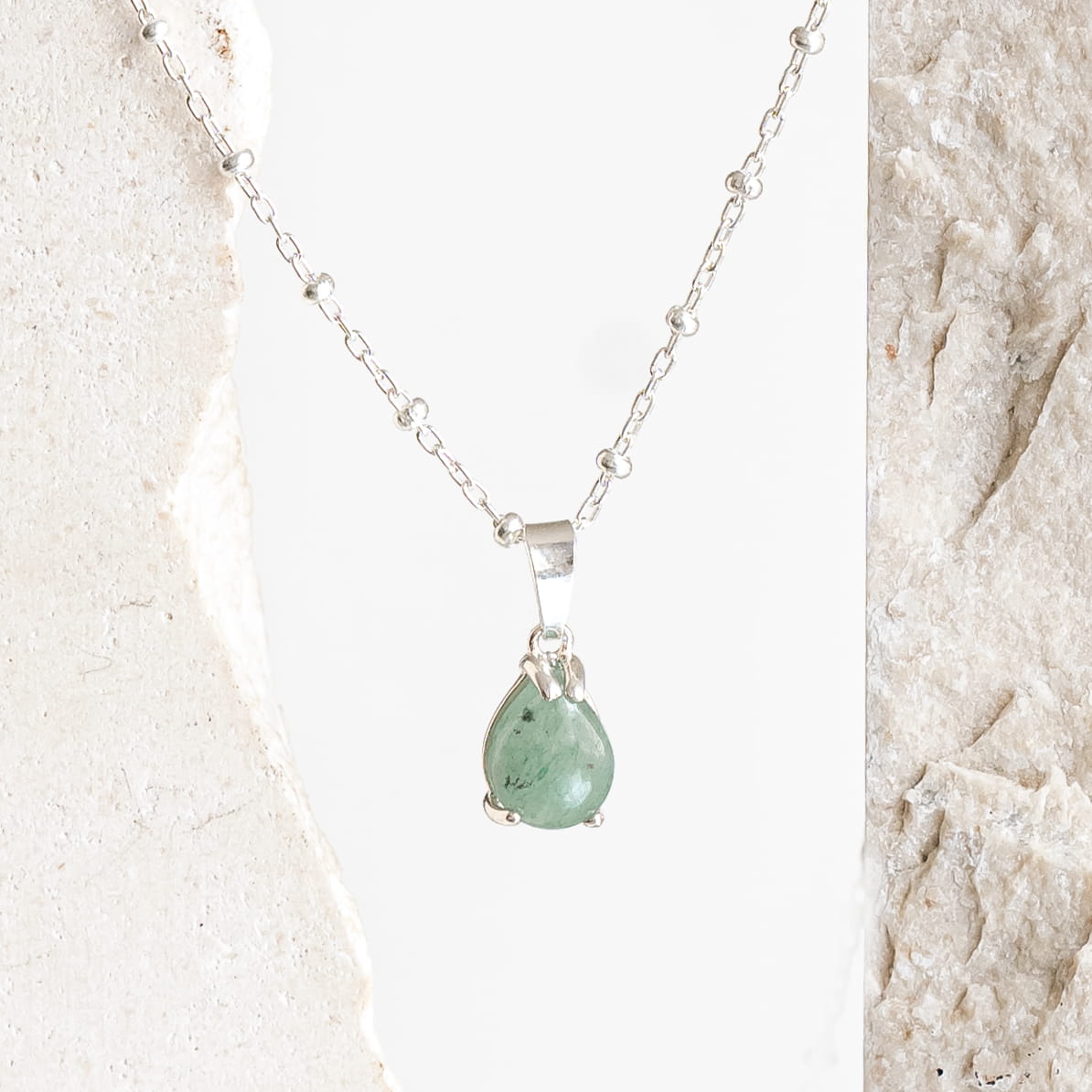 Naszyjnik Duża Łezka z Awenturynem Silver