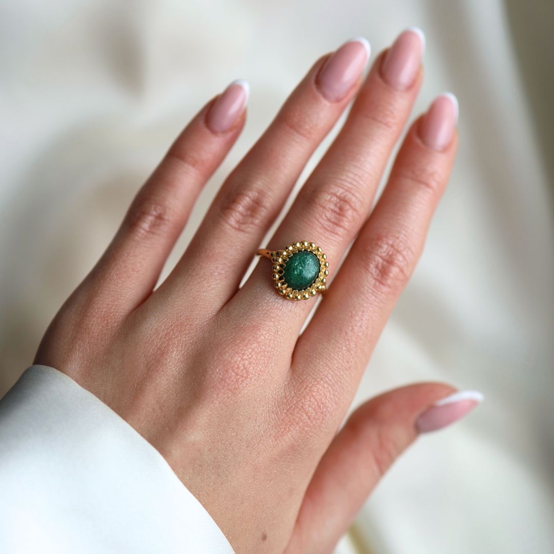 Pierścionek Vintage z Awenturynem Gold