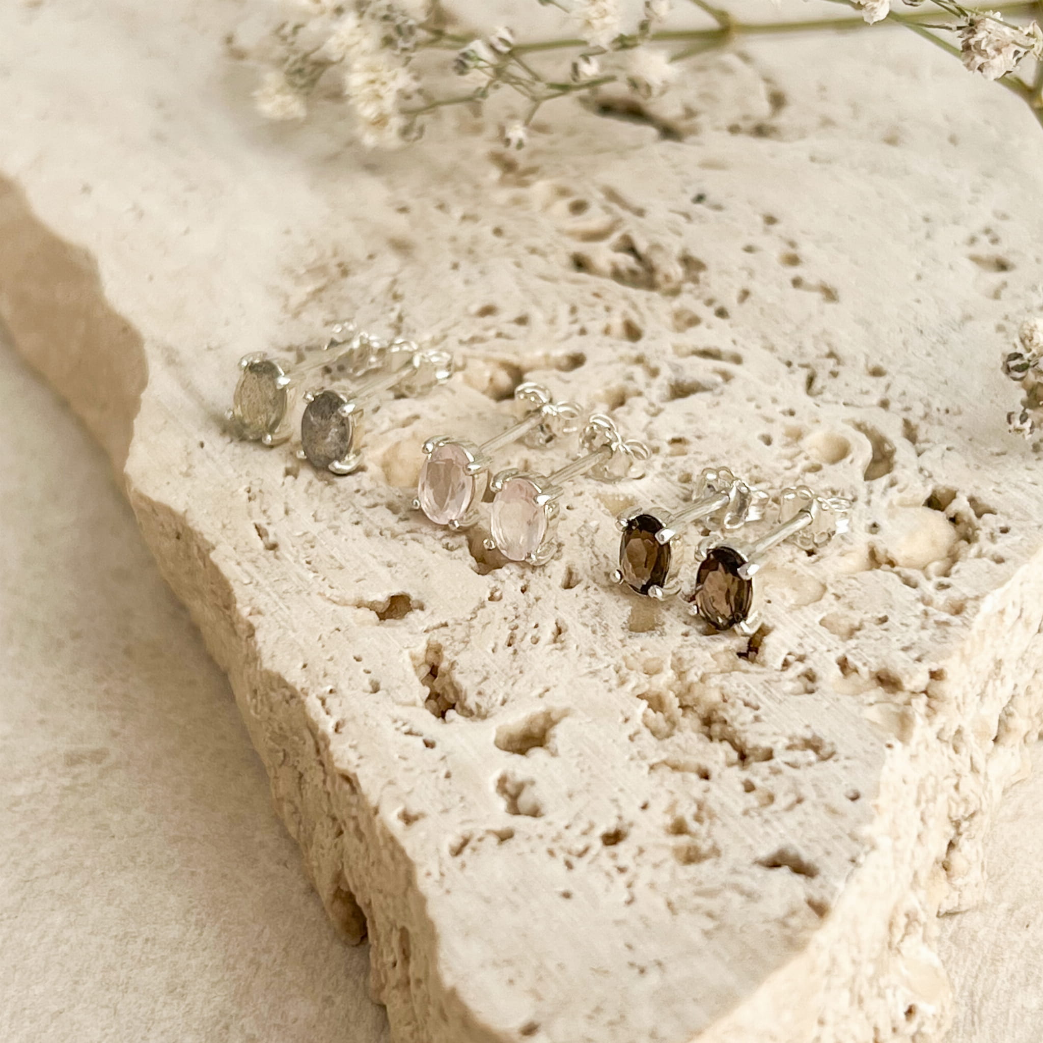 Kolczyki wykonane są z kwarcu dymnego oraz srebra (próba 925).