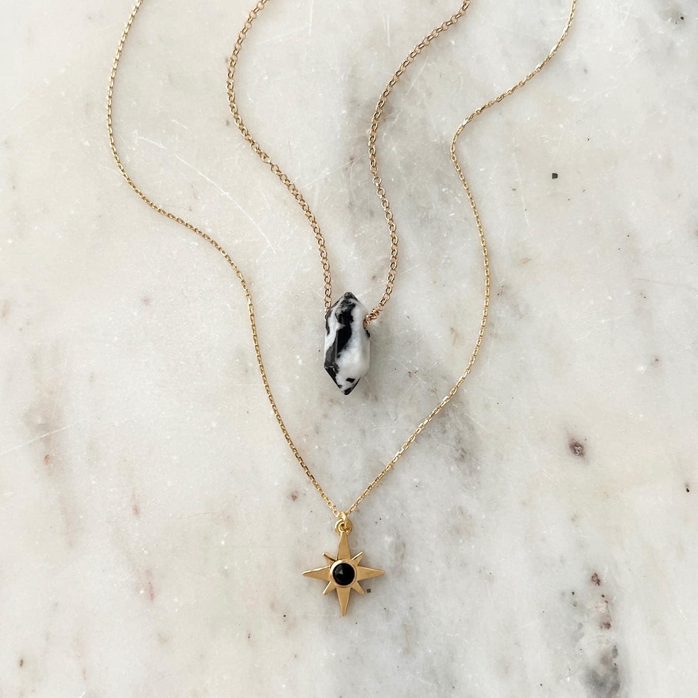 Naszyjnik Róża Wiatrów z Onyksem Gold