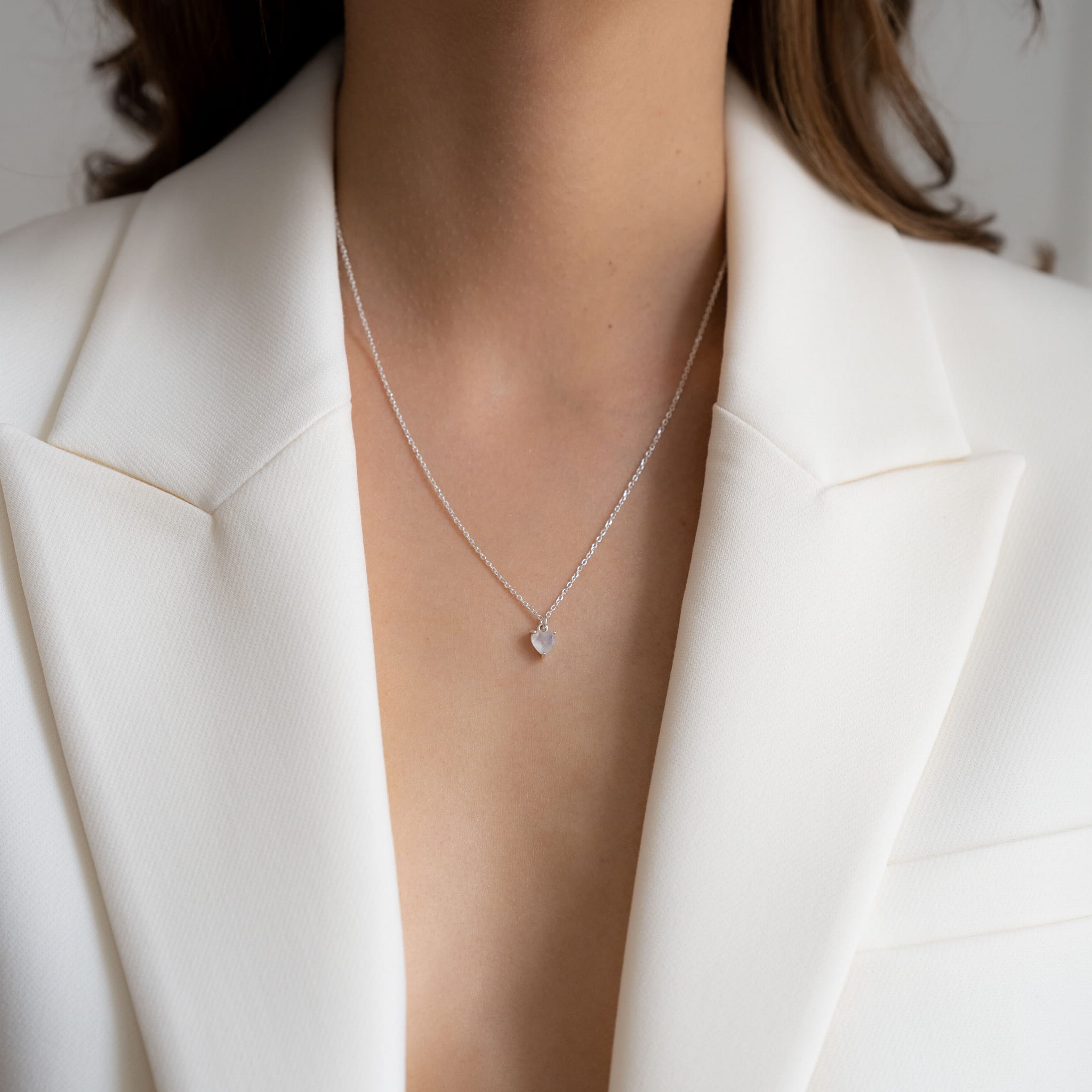 Naszyjnik Serce z Kamieniem Księżycowym Silver