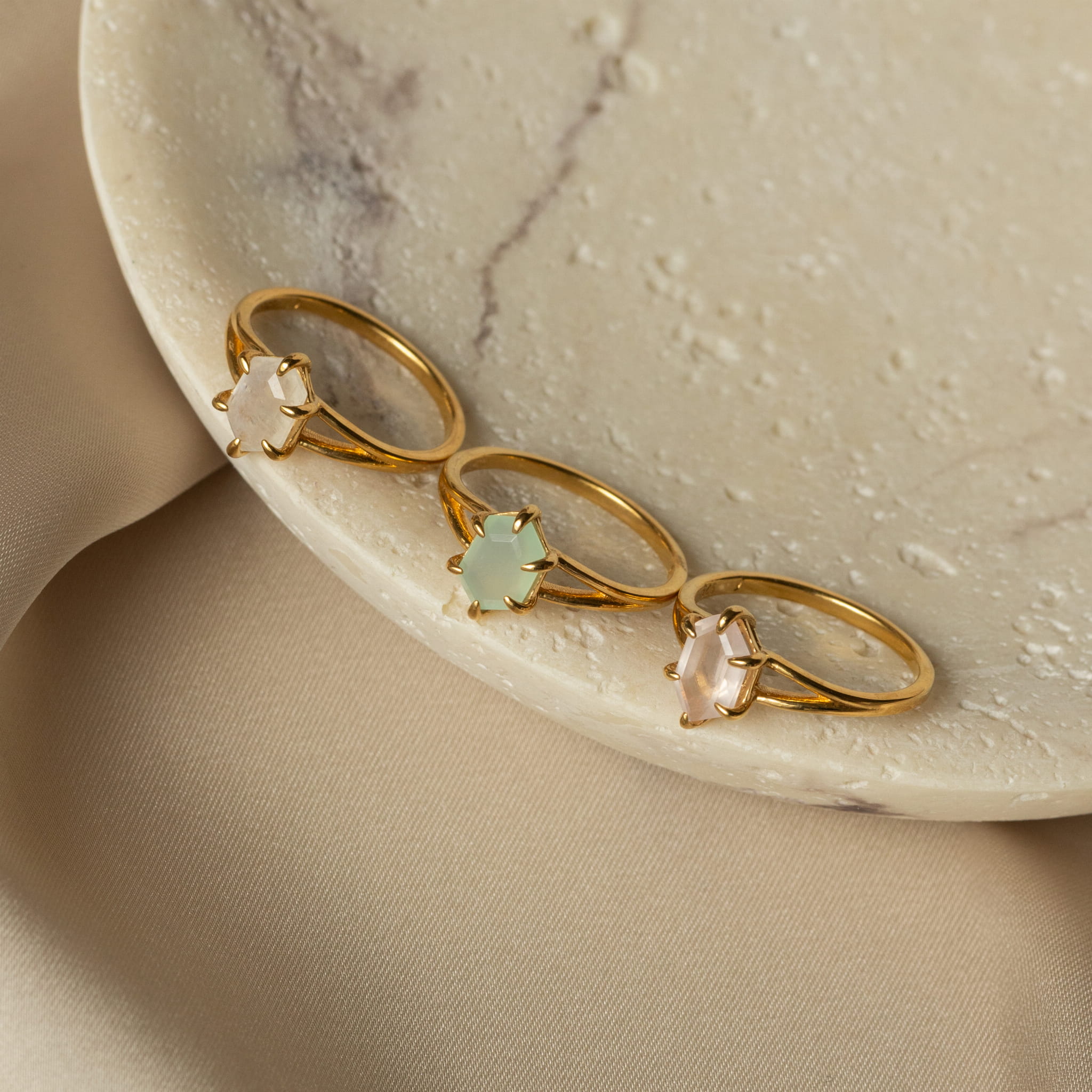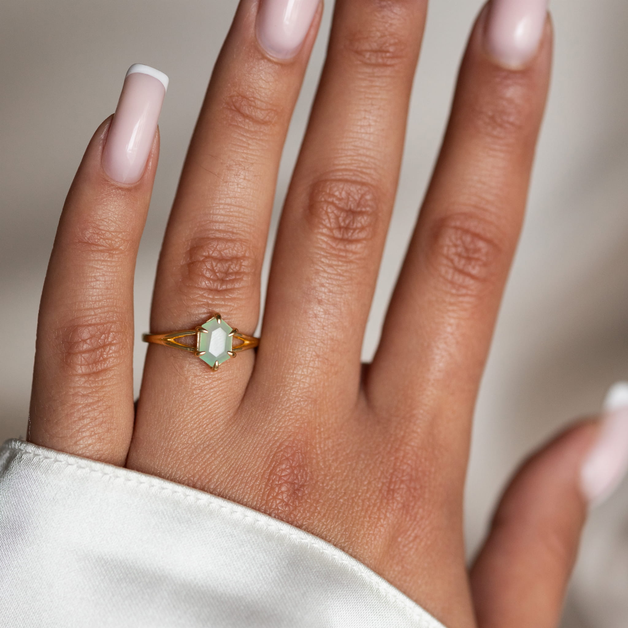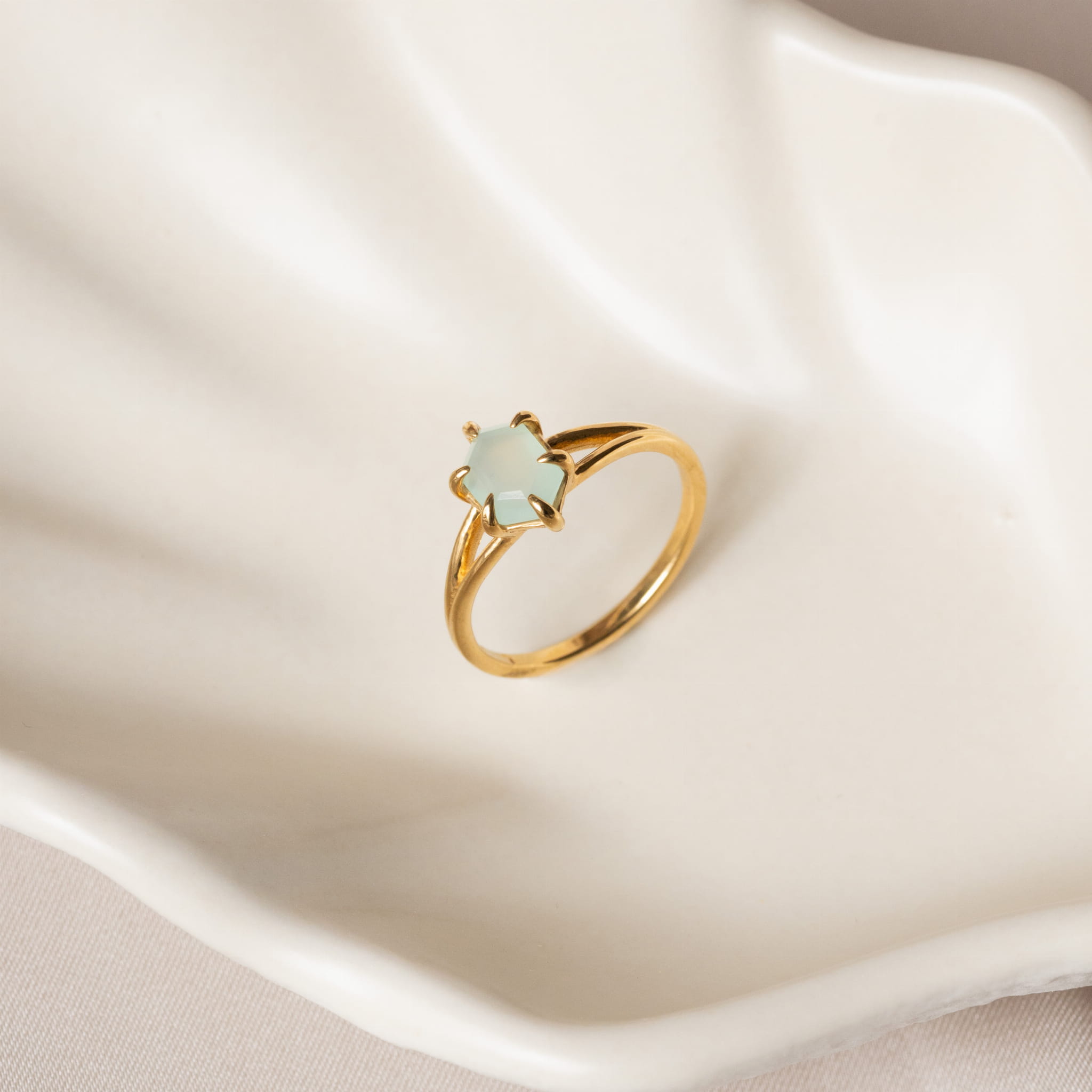Pierścionek Hexagon z Agatem Miętowym Gold