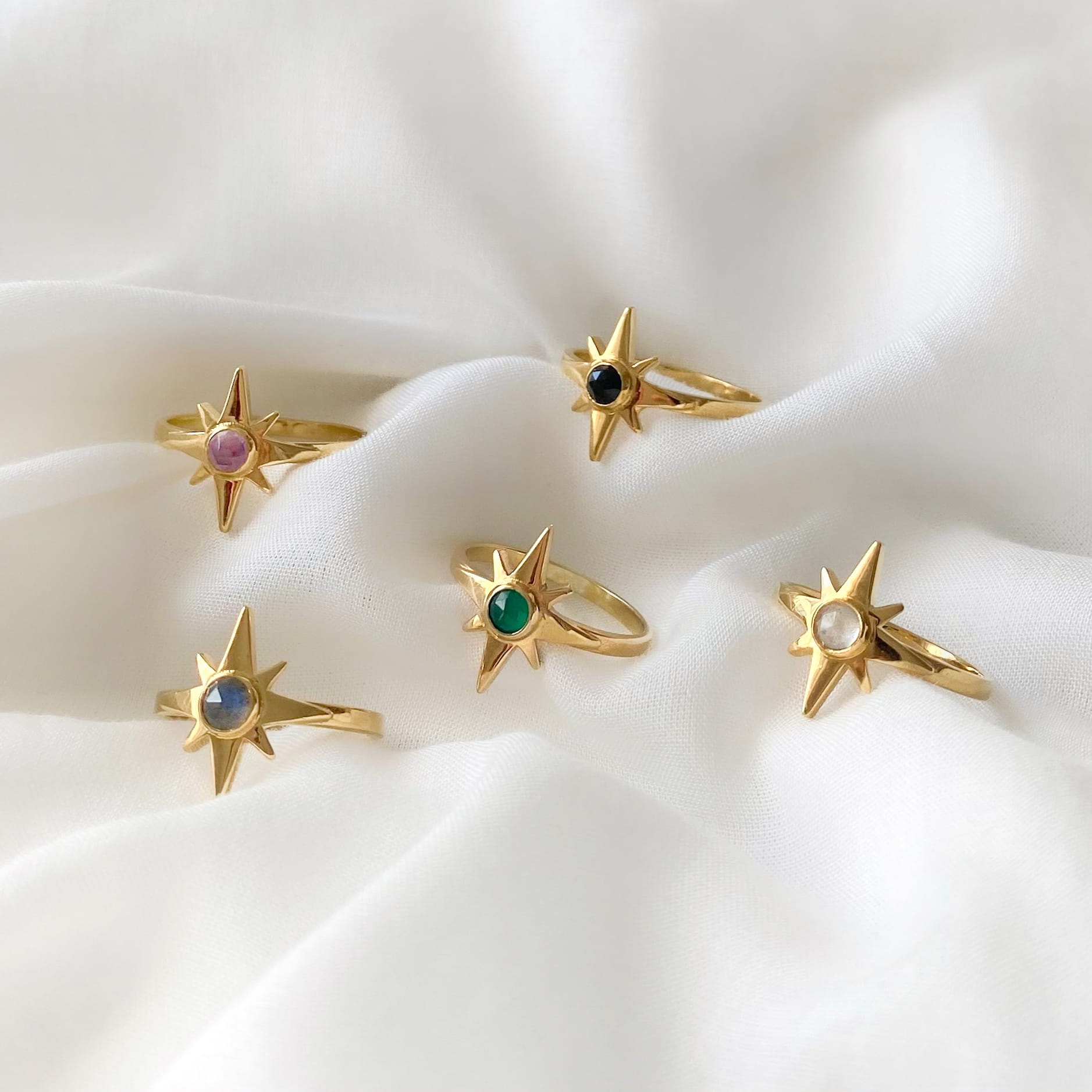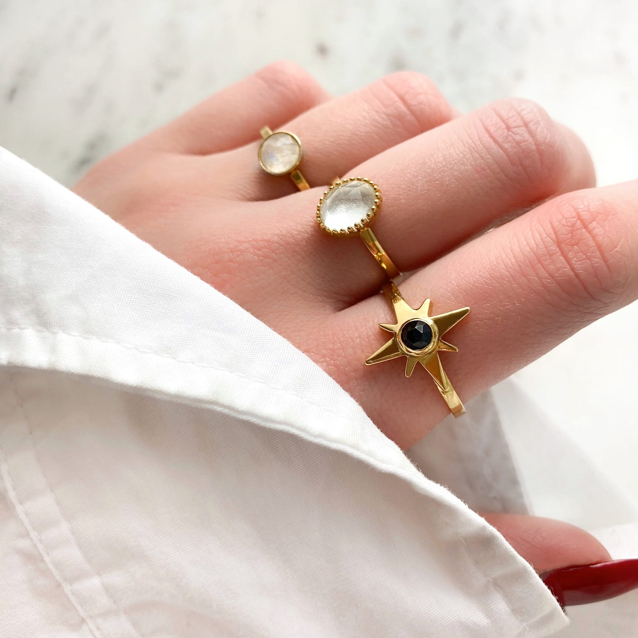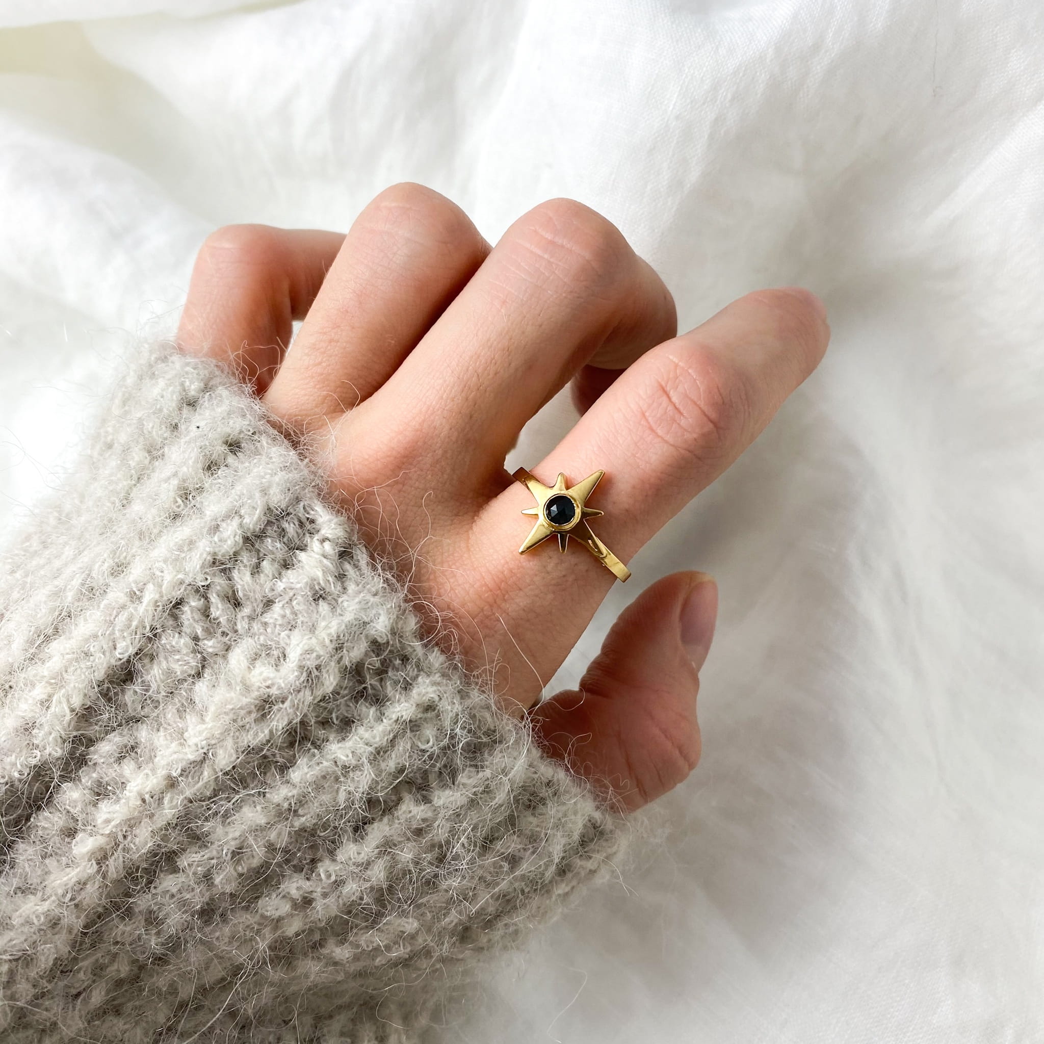 Pierścionek Róża Wiatrów z Onyksem Gold