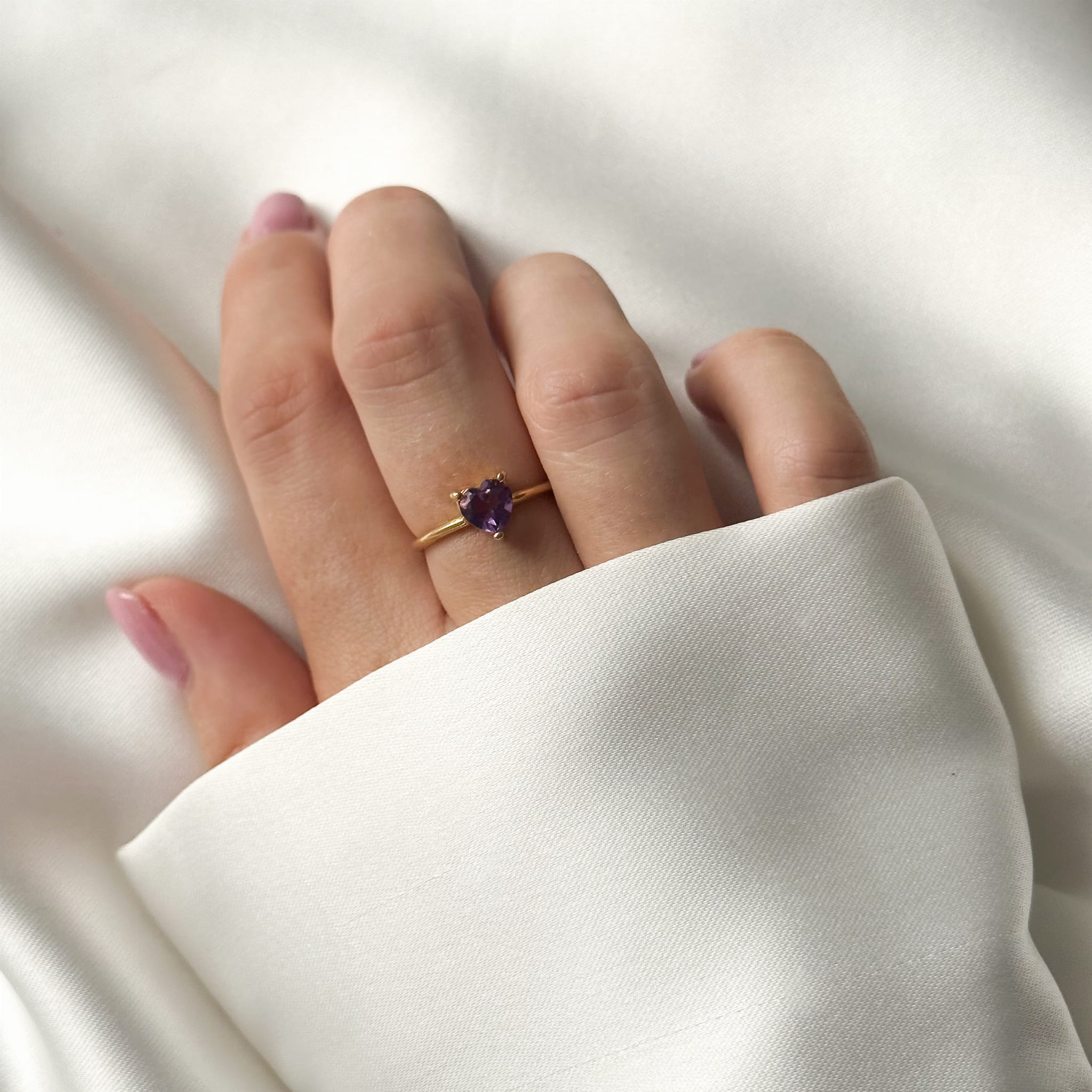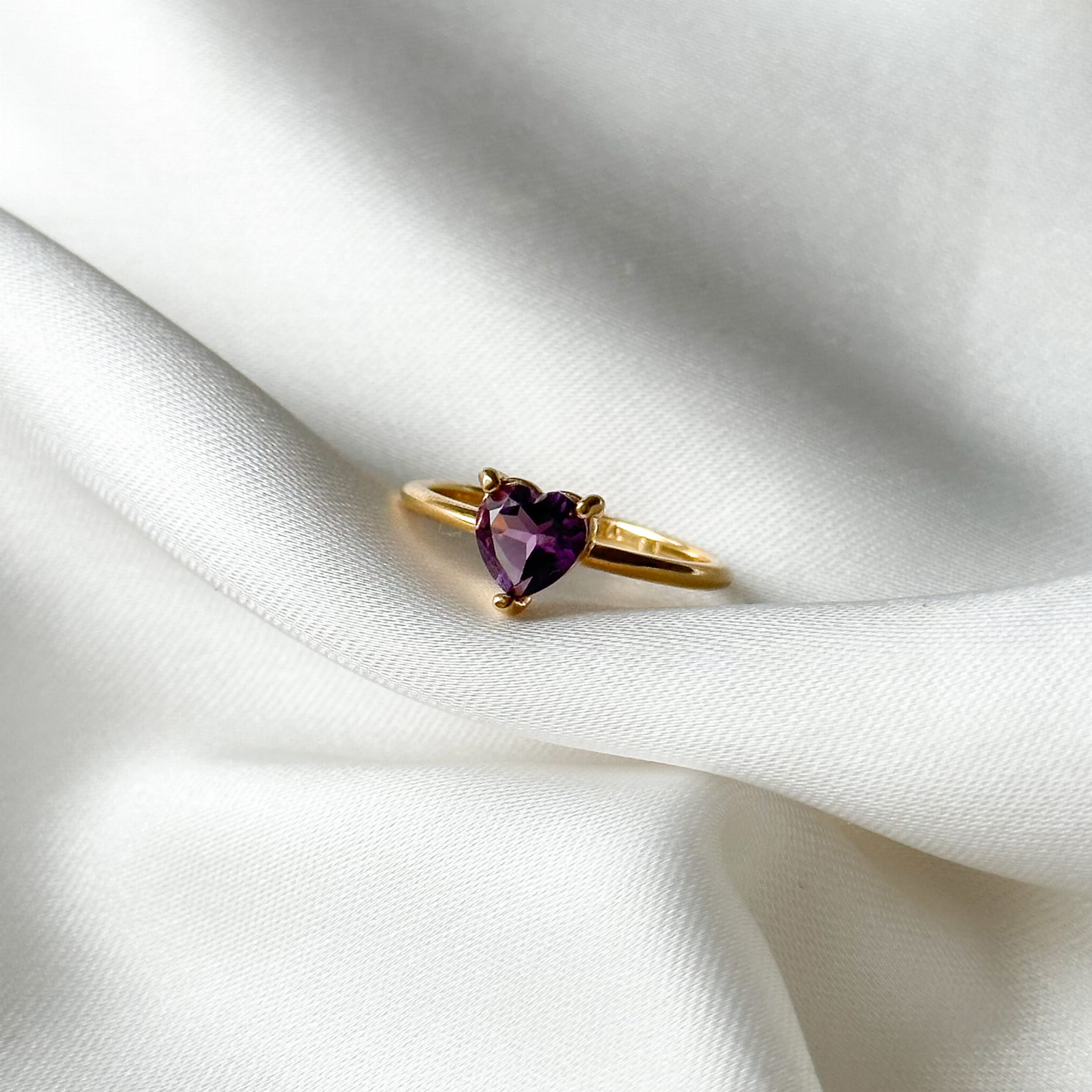 Pierścionek Serce z Ametystem Gold
