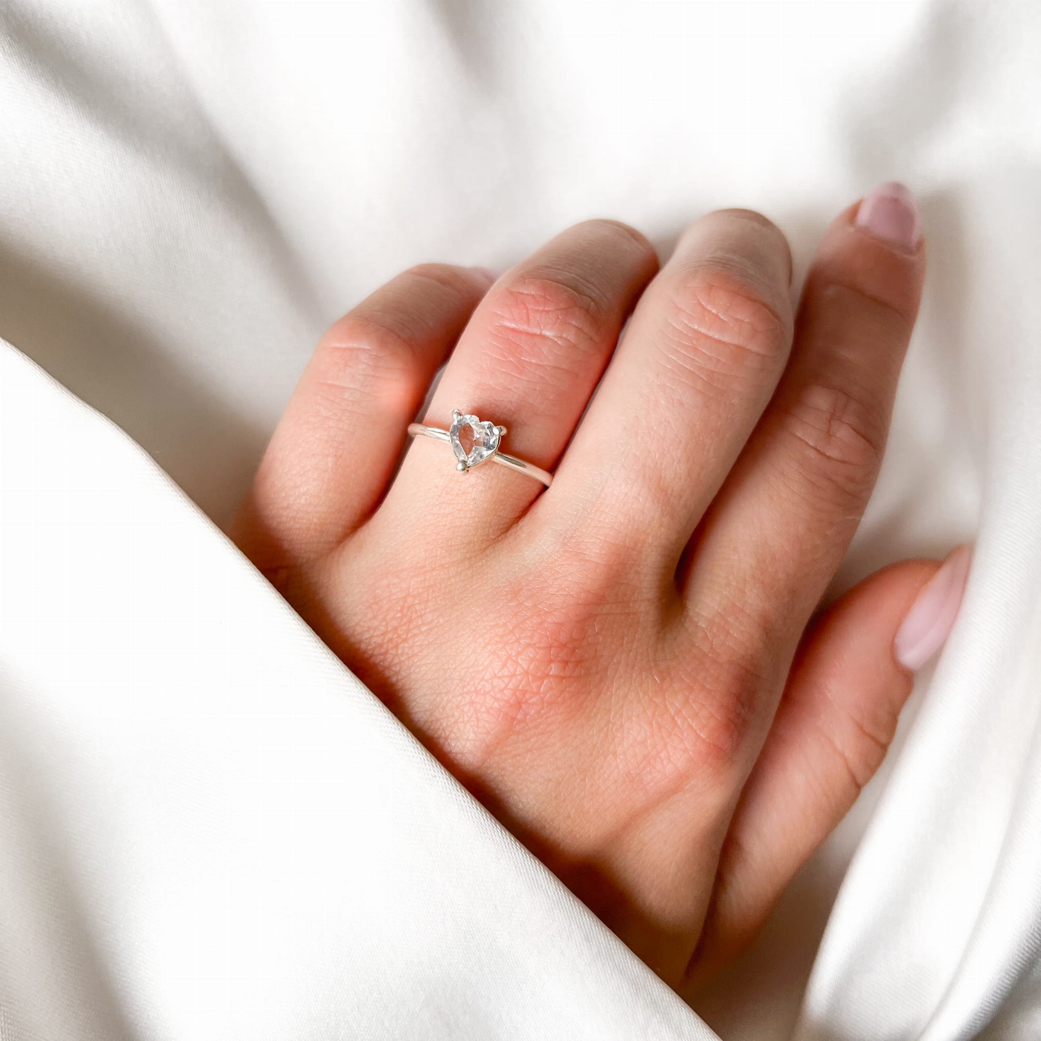 Pierścionek Serce z Białym Topazem Silver
