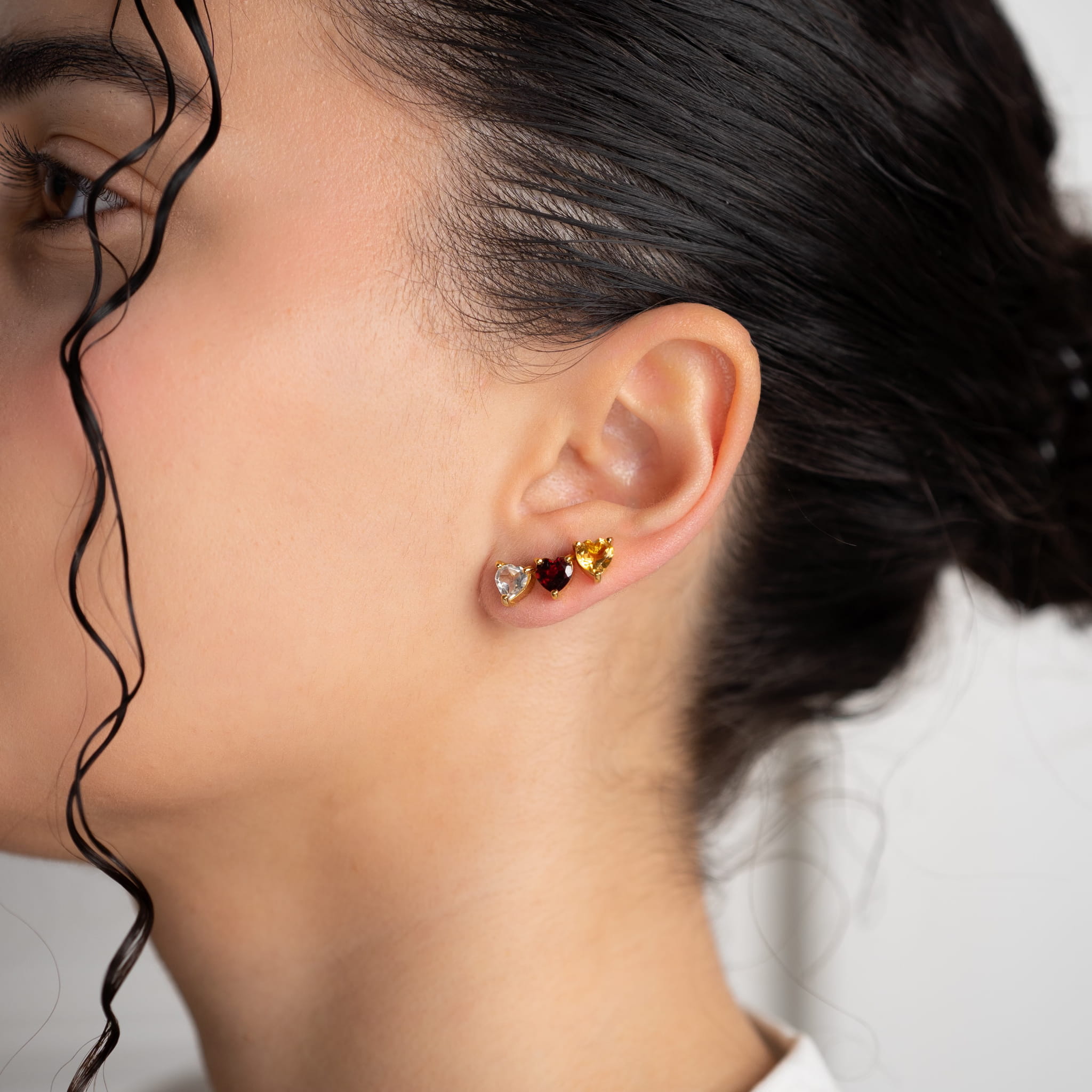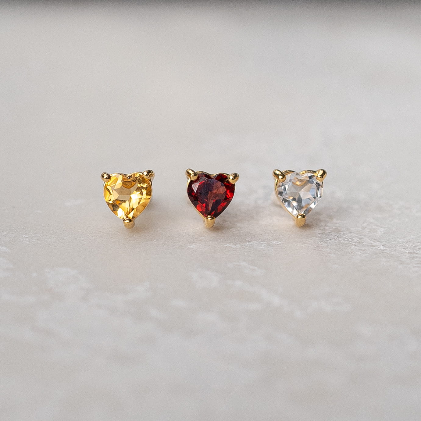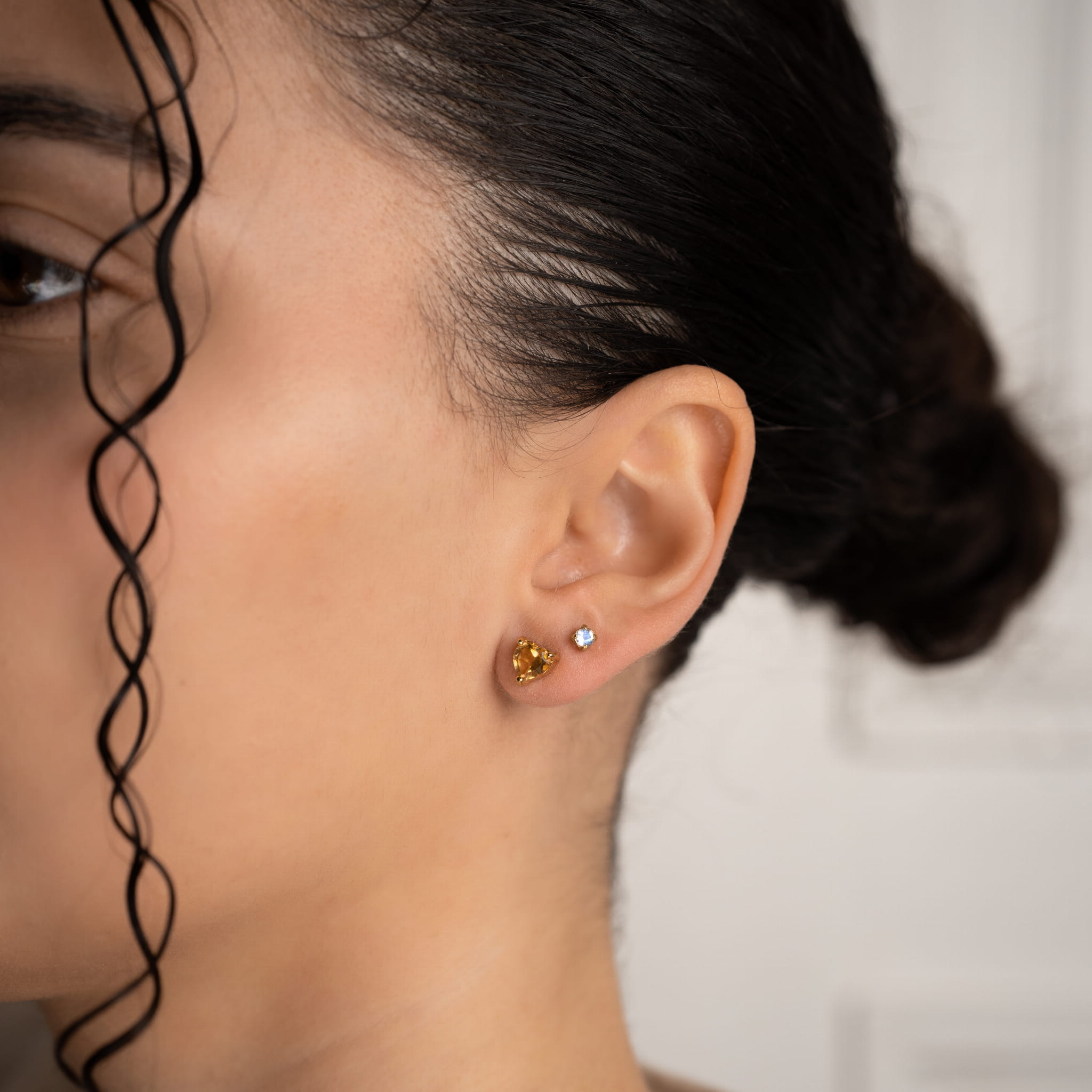 Złote Kolczyki Sztyfty Serce z Cytrynem
