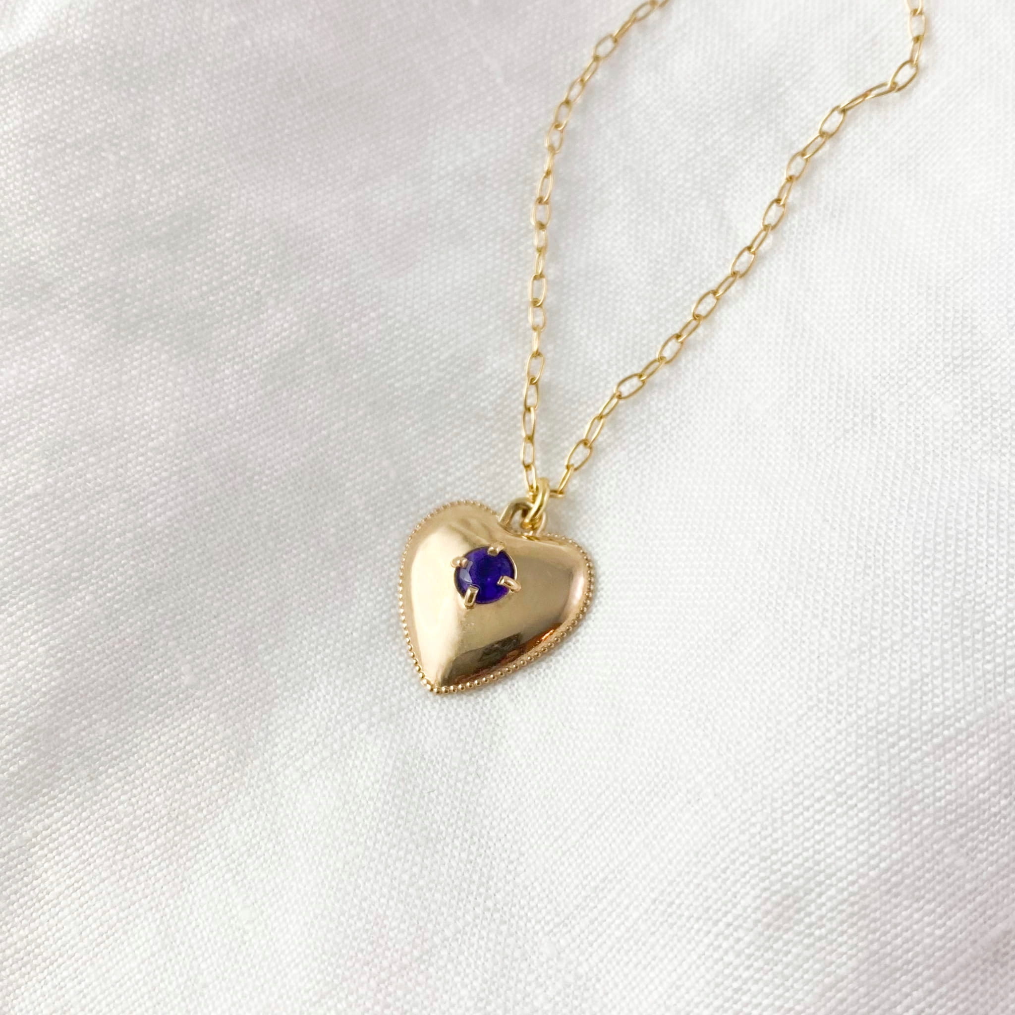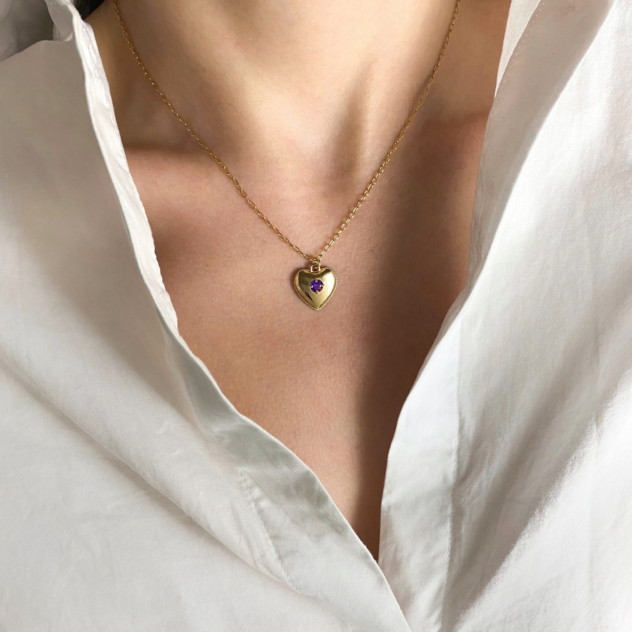 Naszyjnik składa się z ametystu oraz złotego serca i łańcuszka (próba 585).