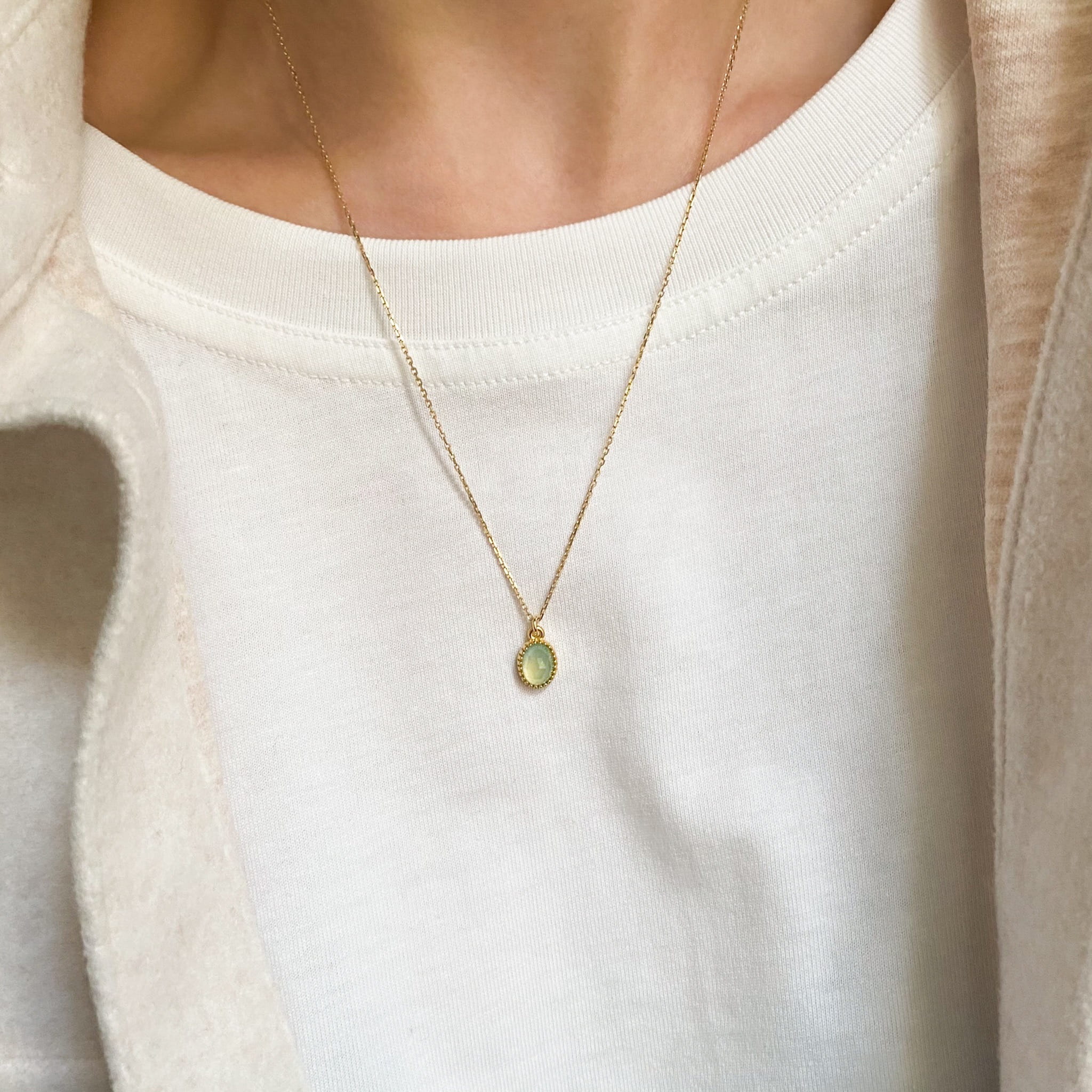 Złoty Naszyjnik z Owalnym Agatem Miętowym