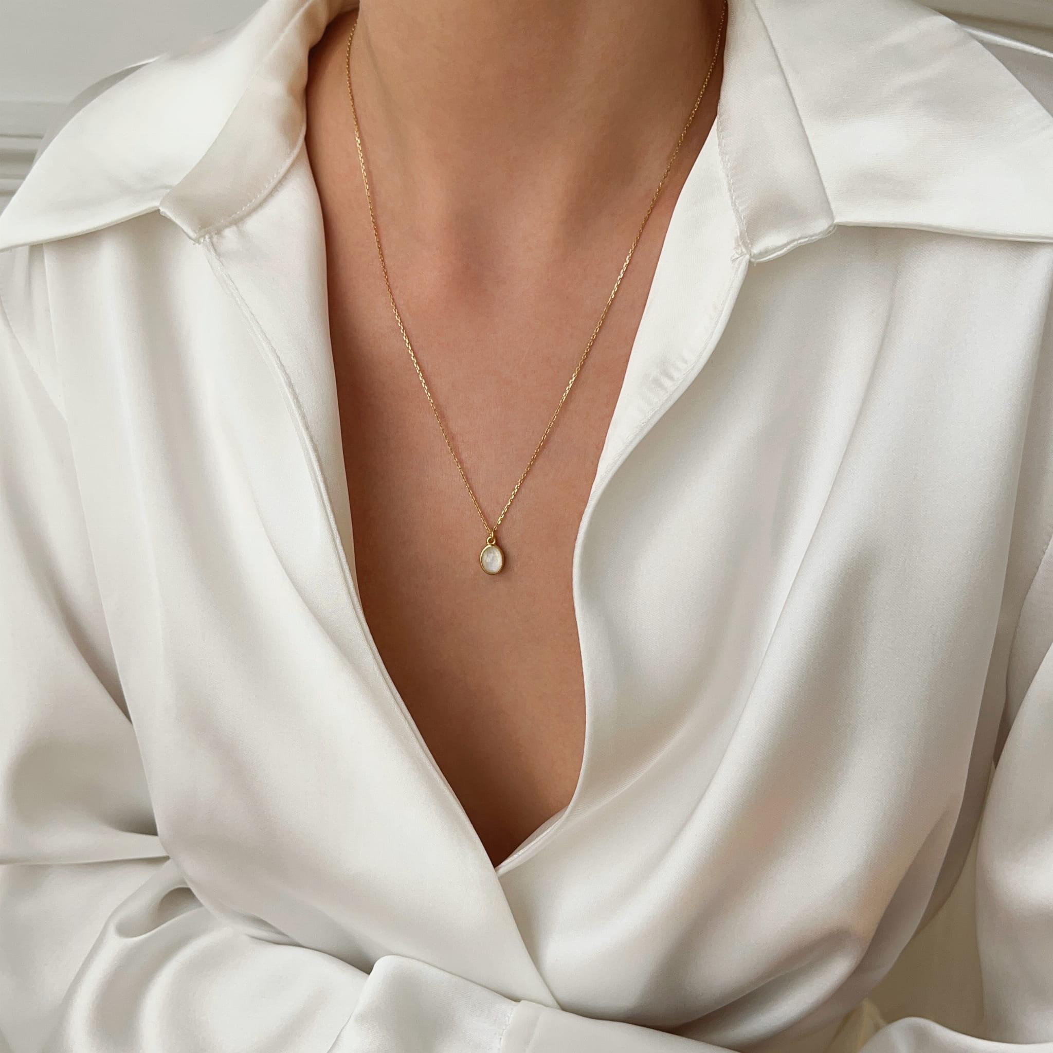 Złoty Naszyjnik z Owalnym Kamieniem Księżycowym w Szlifie Fasetowanym