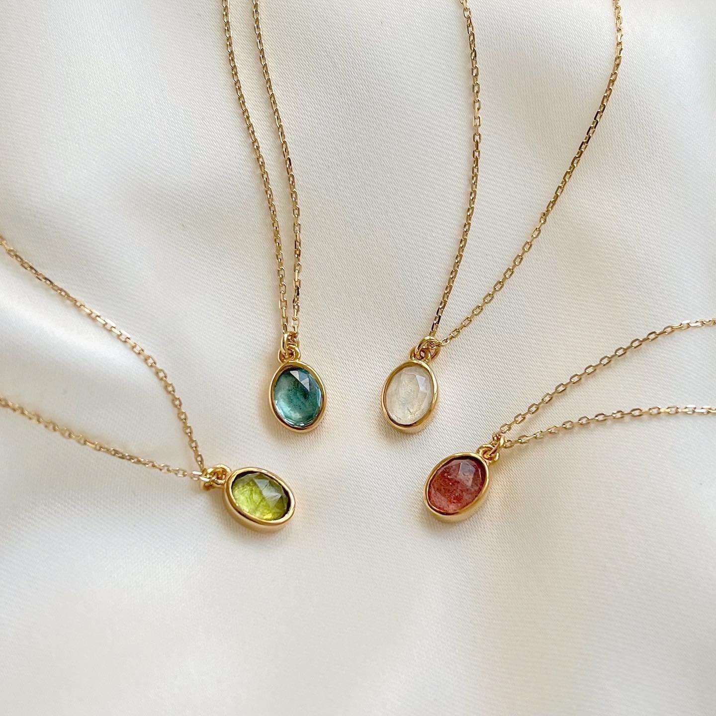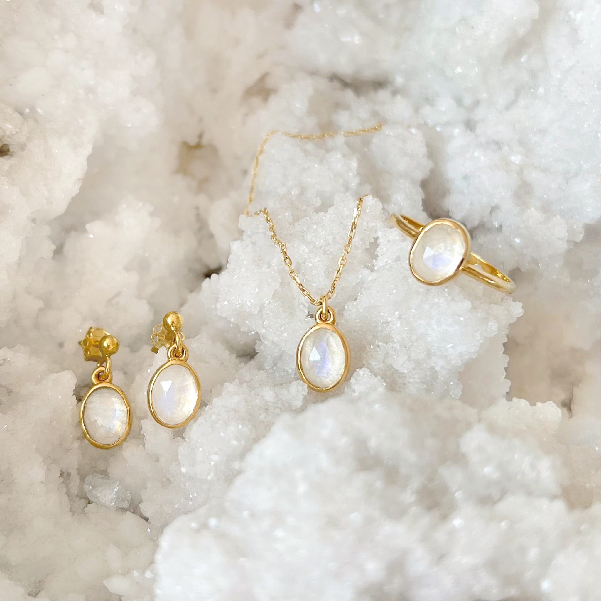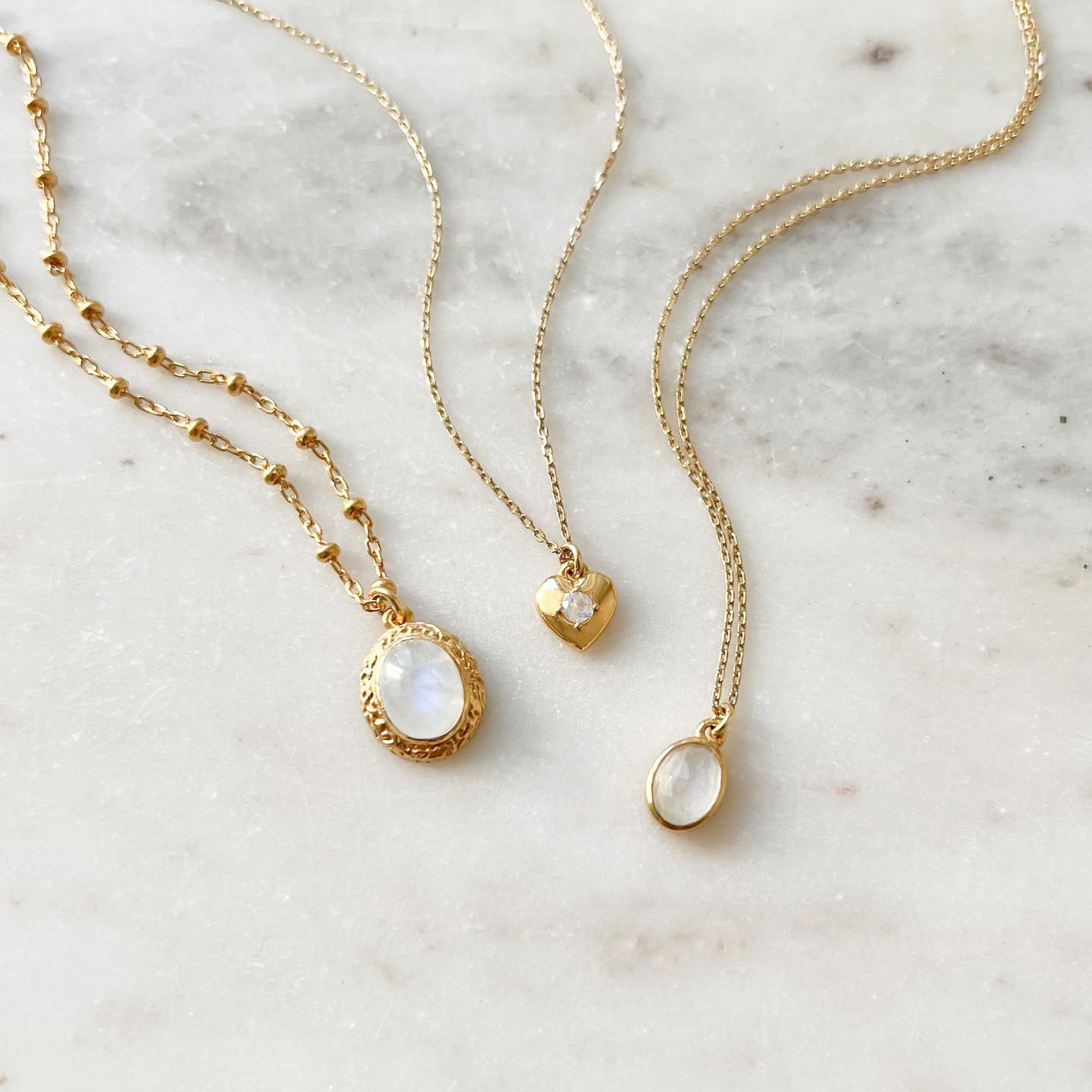 Naszyjnik składa się z kamienia księżycowego oraz złotego księżyca i łańcuszka (próba 585).