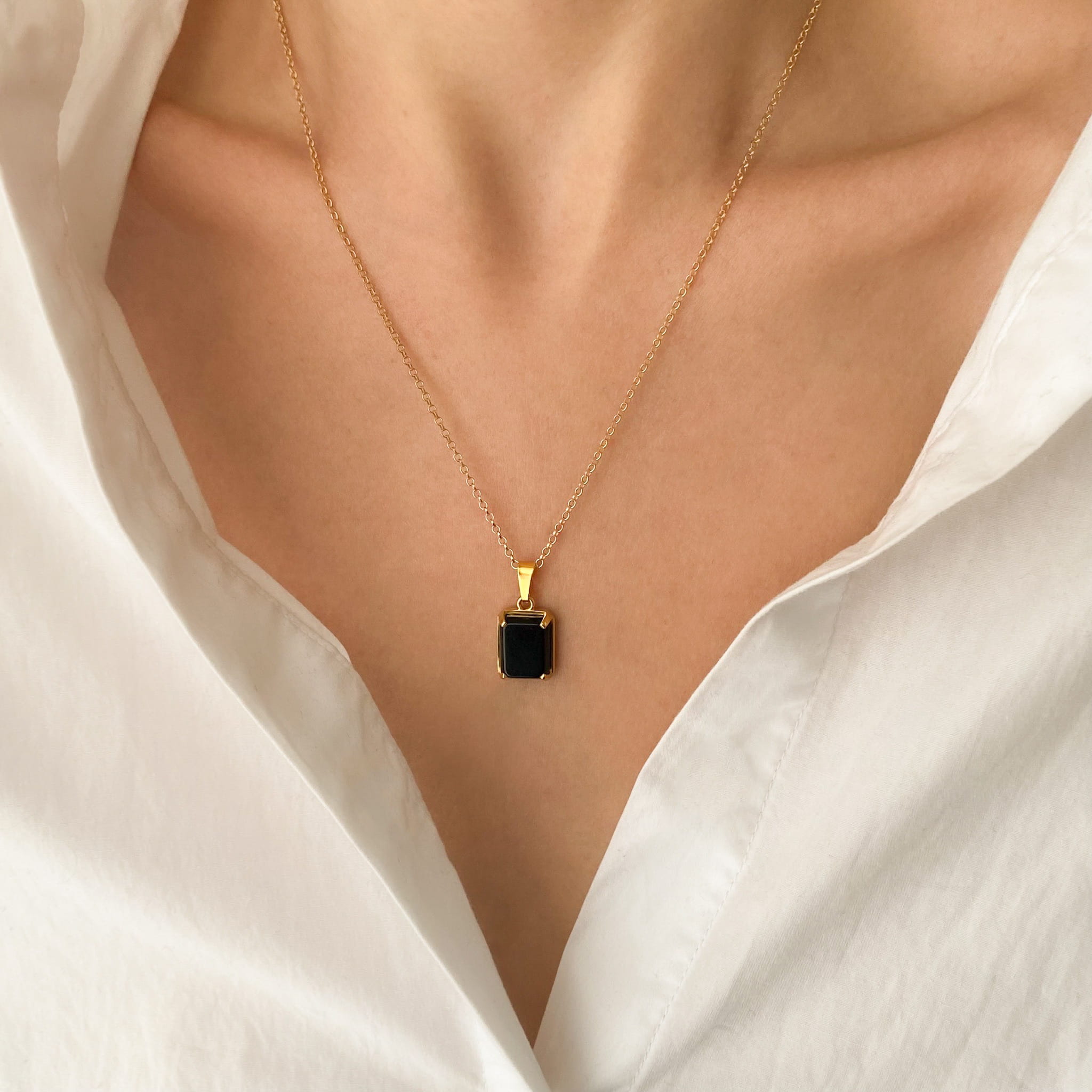 Złoty Naszyjnik z Prostokątnym Onyksem