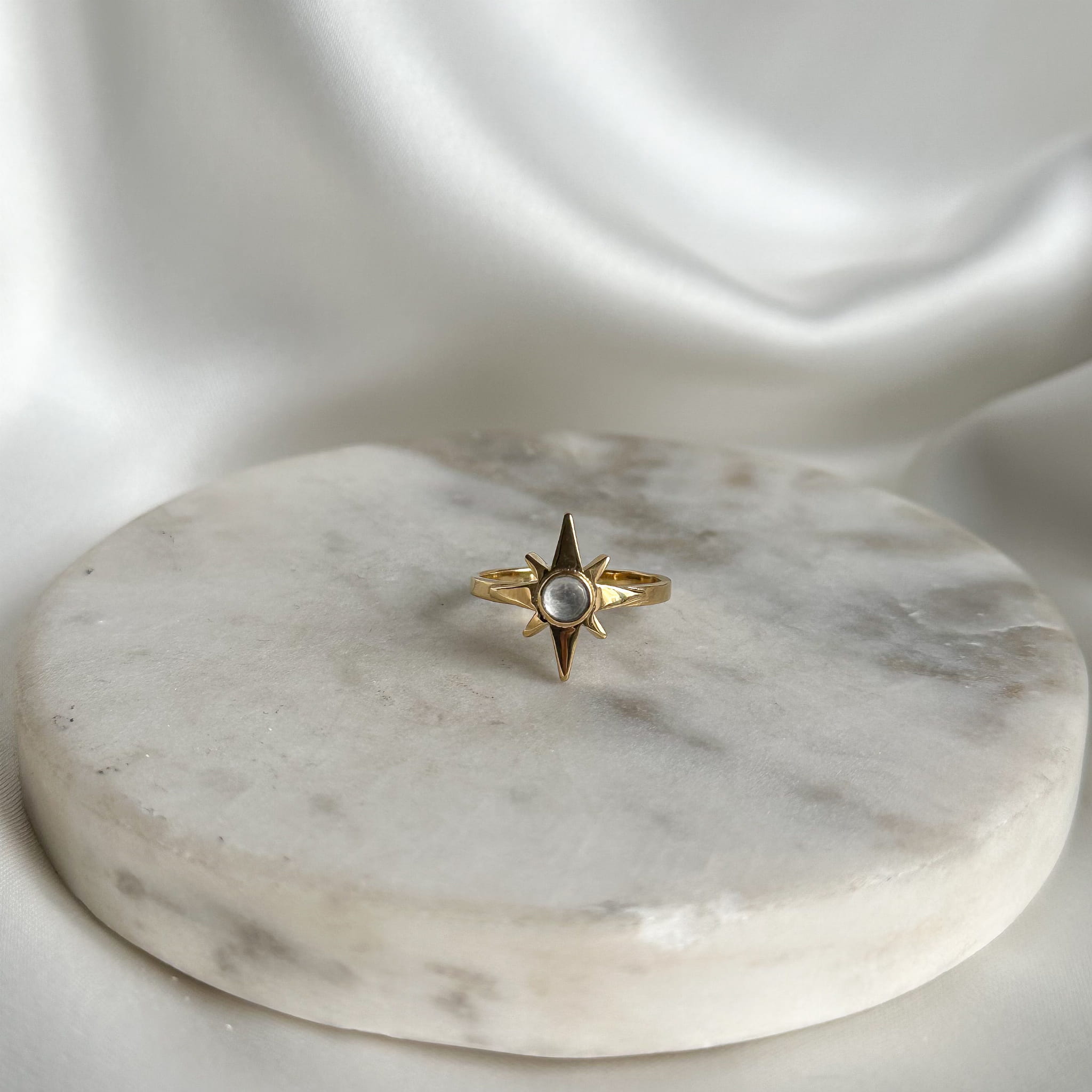 Złoty Pierścionek Róża Wiatrów z Kryształem Górskim