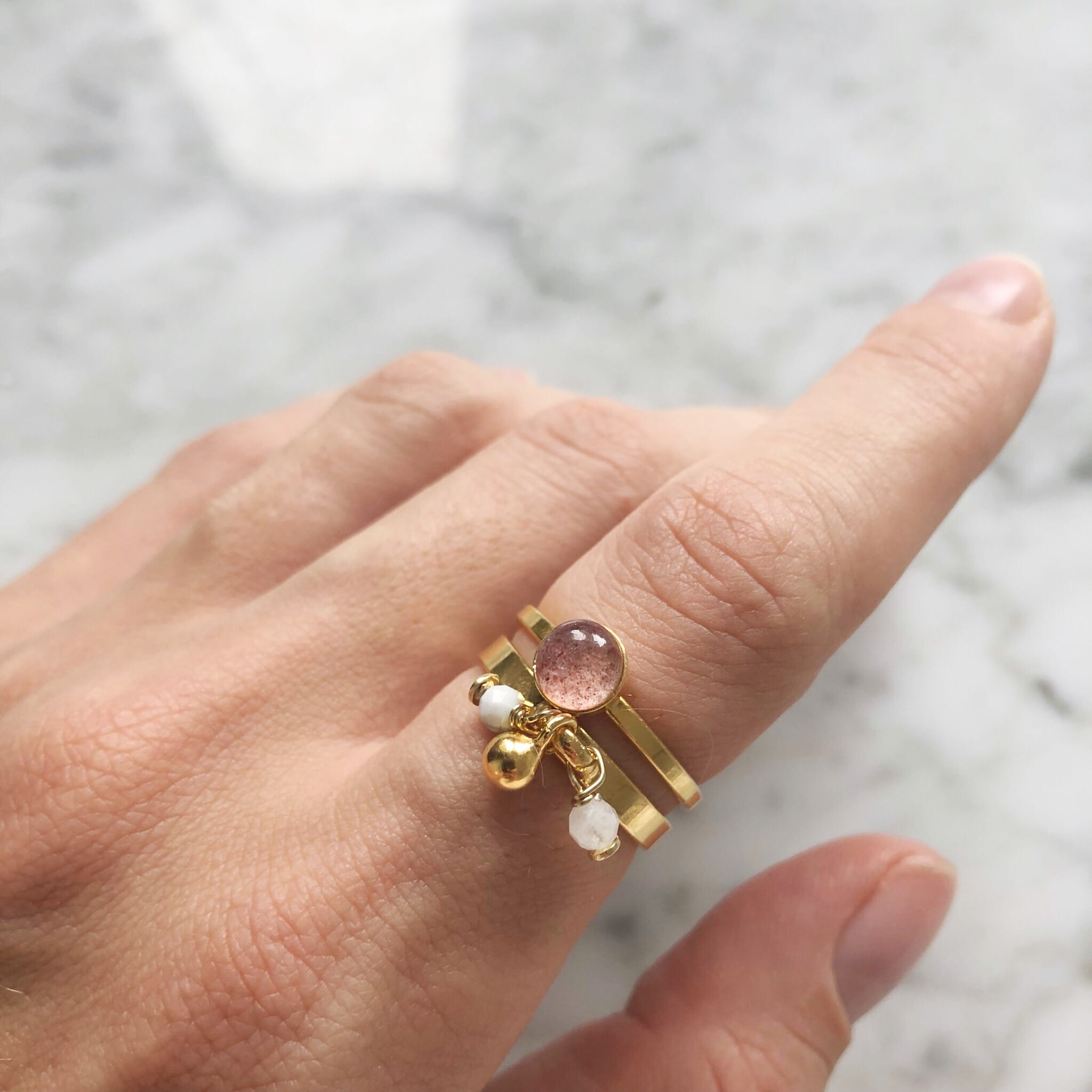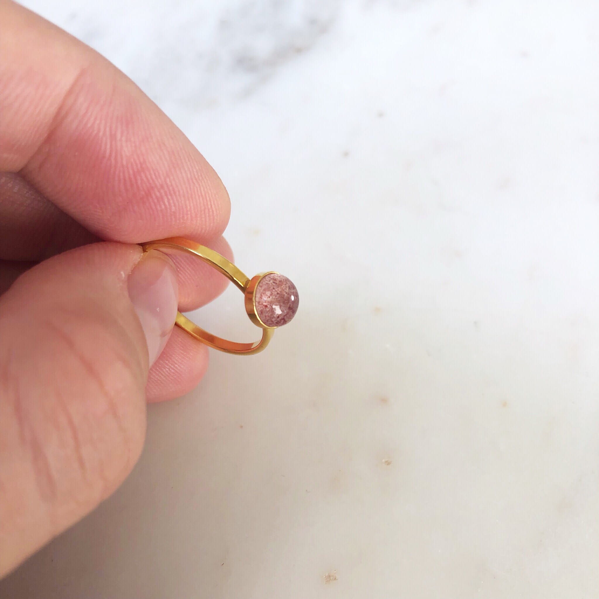 Złoty Pierścionek z Kwarcem Truskawkowym