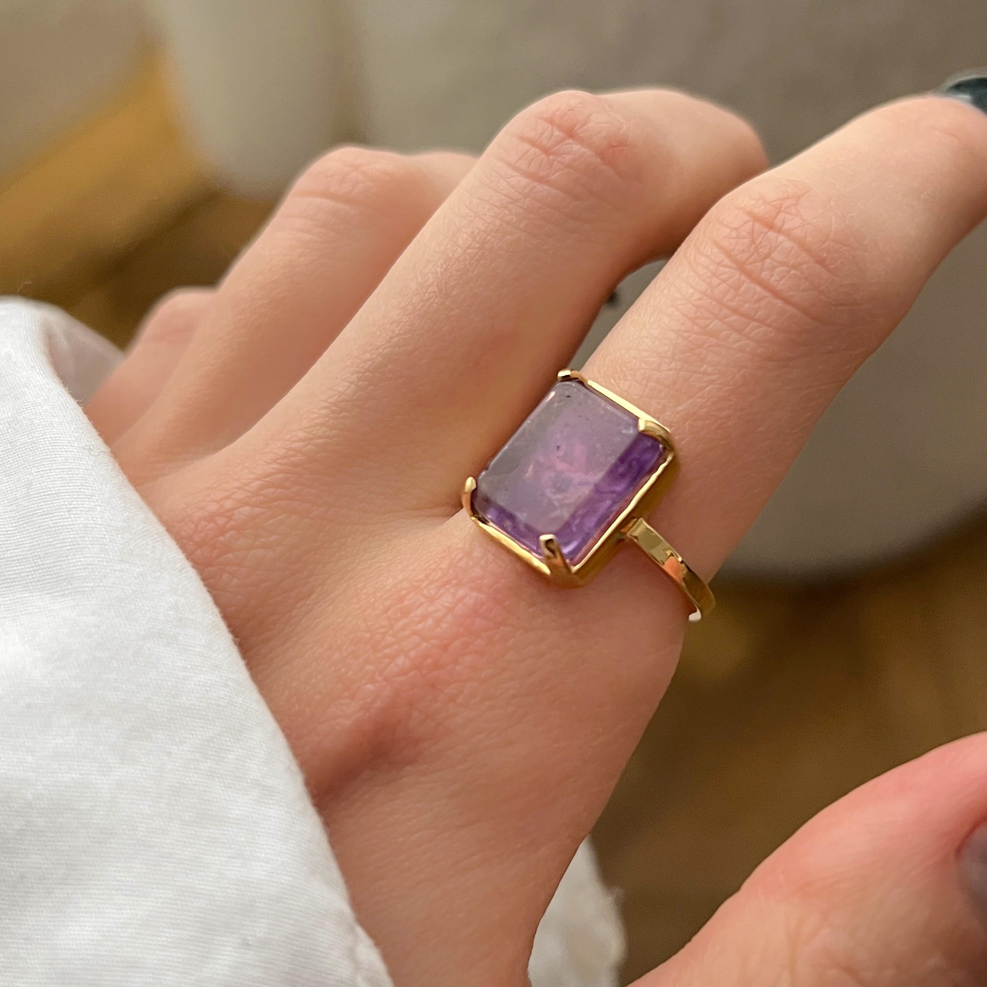 Pierścionek składa się z ametystu oraz złota (próba 585).
